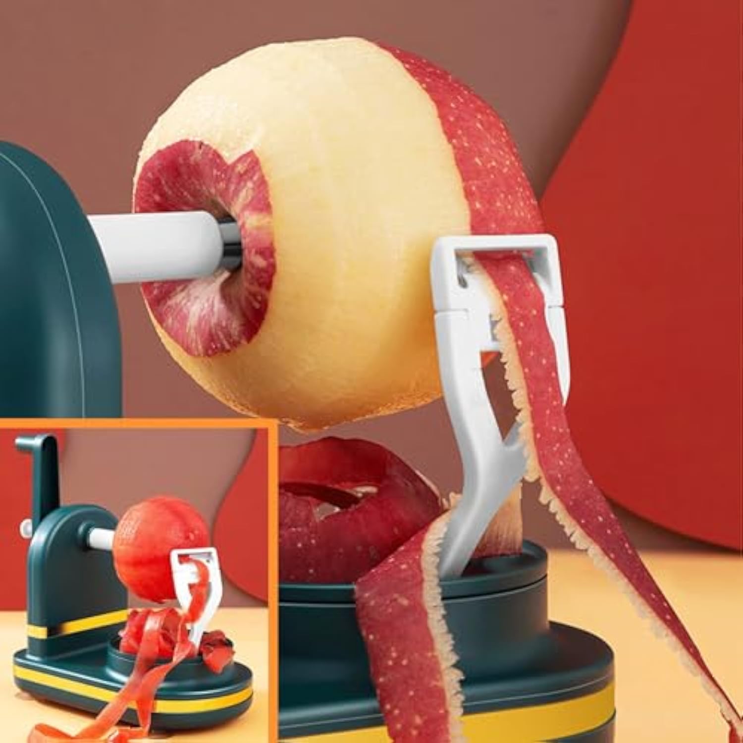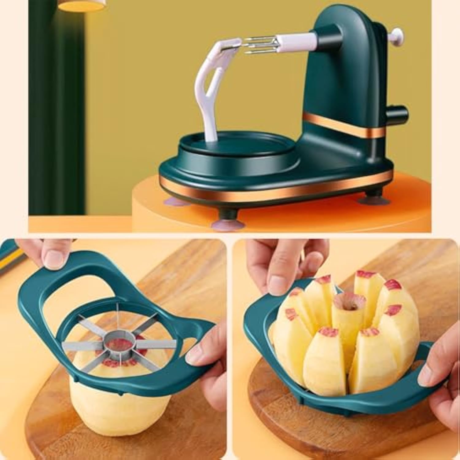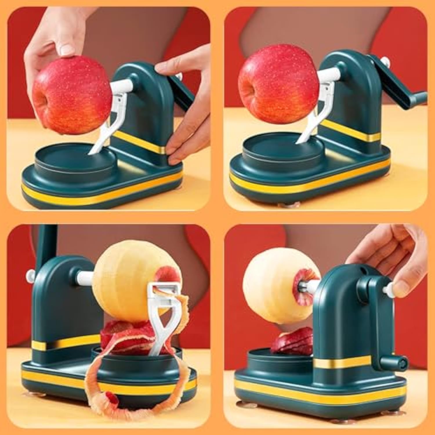 【Efficient peeler】Stainless steel blades for faster peeling. Apple peeler just peels the outer skin, it won't cut thick and doesn't waste any nutritious part. Plastic non-slip base, sturdy and durable, stable peeling.