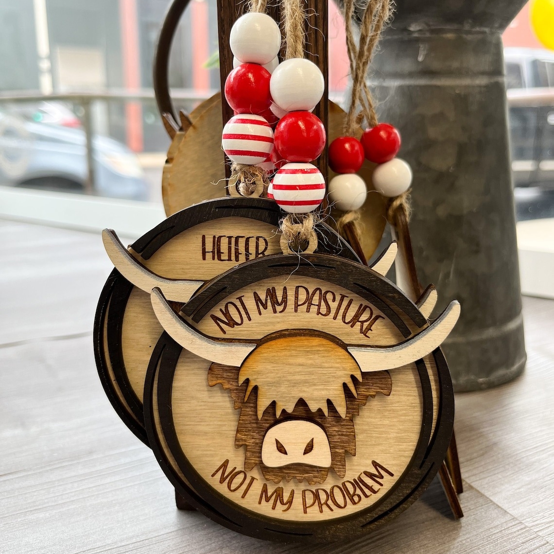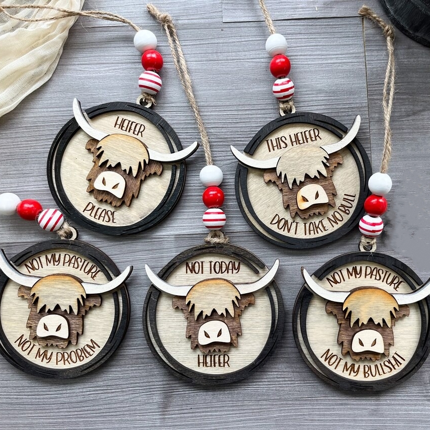 - Package:1*Highland Cow Wooden Hanging Ornament