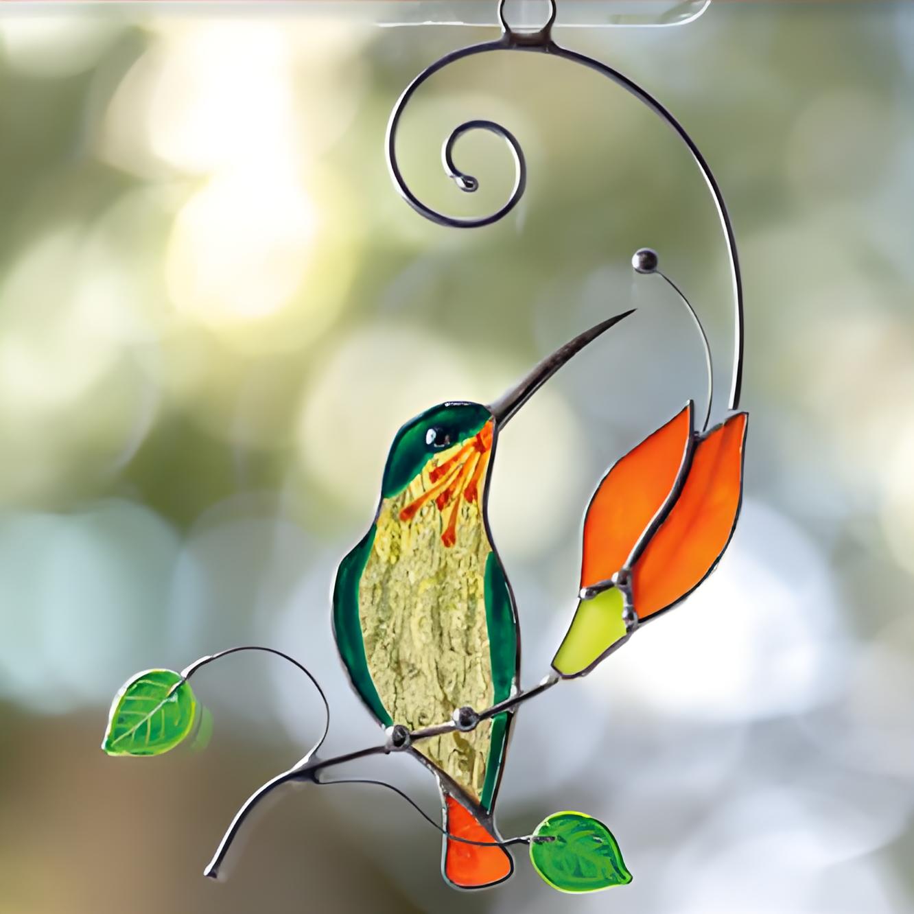 💖💖This gentle hummingbird window hanging made of stained glass is a great decoration for your home or garden as this lovely green bird and flowers will please your eyes every day.