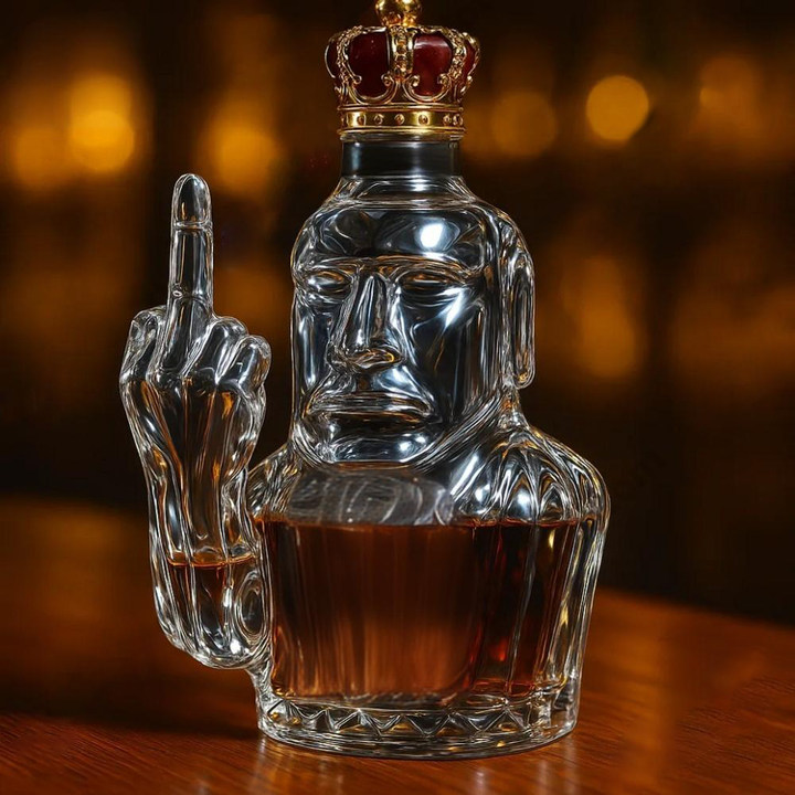 - The bottles are made of clear, high-quality glass, offering a stunning, translucent look. The Moai statues are sculpted with a very detailed design, including a furrowed brow and a strong, imposing facial expression, which is a nod to the ancient stone statues of Easter Island.