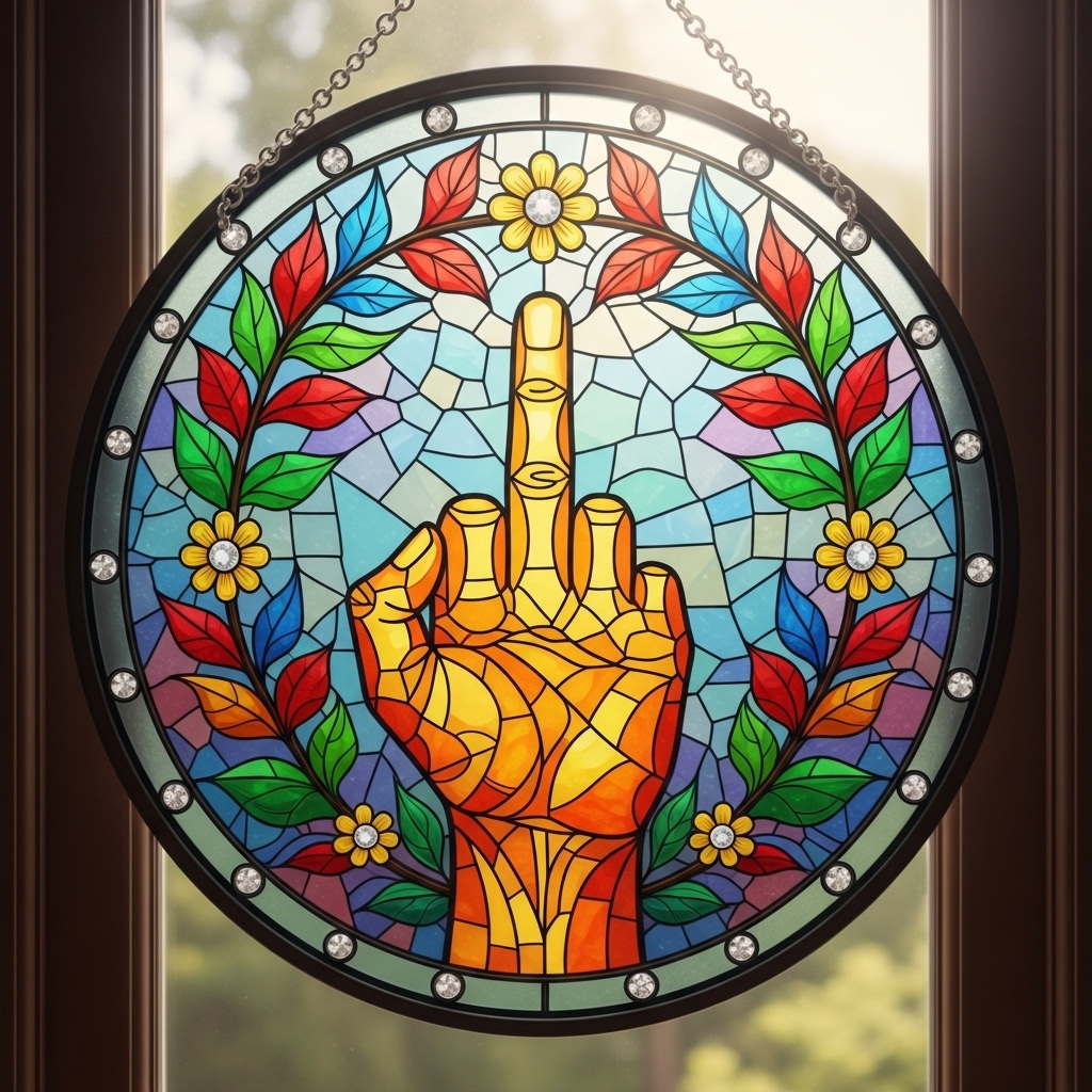 🤩Cool Middle Finger Suncatcher to fill your home with color and sense of humor!!Looking forward to the look on your neighbor's face when you see it from your window!