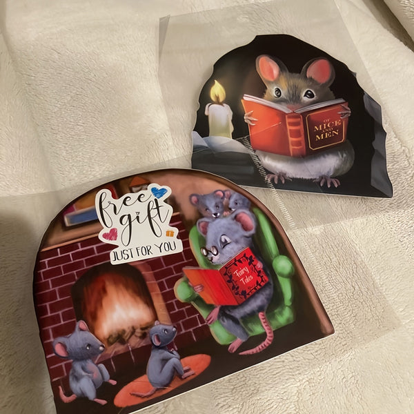 - This listing is for a charming reading mouse hole wall sticker. The mouse, who is tucked up in his mouse hole, reading a book (Steinbeck's 'Of Mice and Men') by candlelight, is an ideal addition to book-loving homes. The wall sticker also makes a unique teacher gift, and a sweet addition to college dorm décor, libraries, and reading nooks.