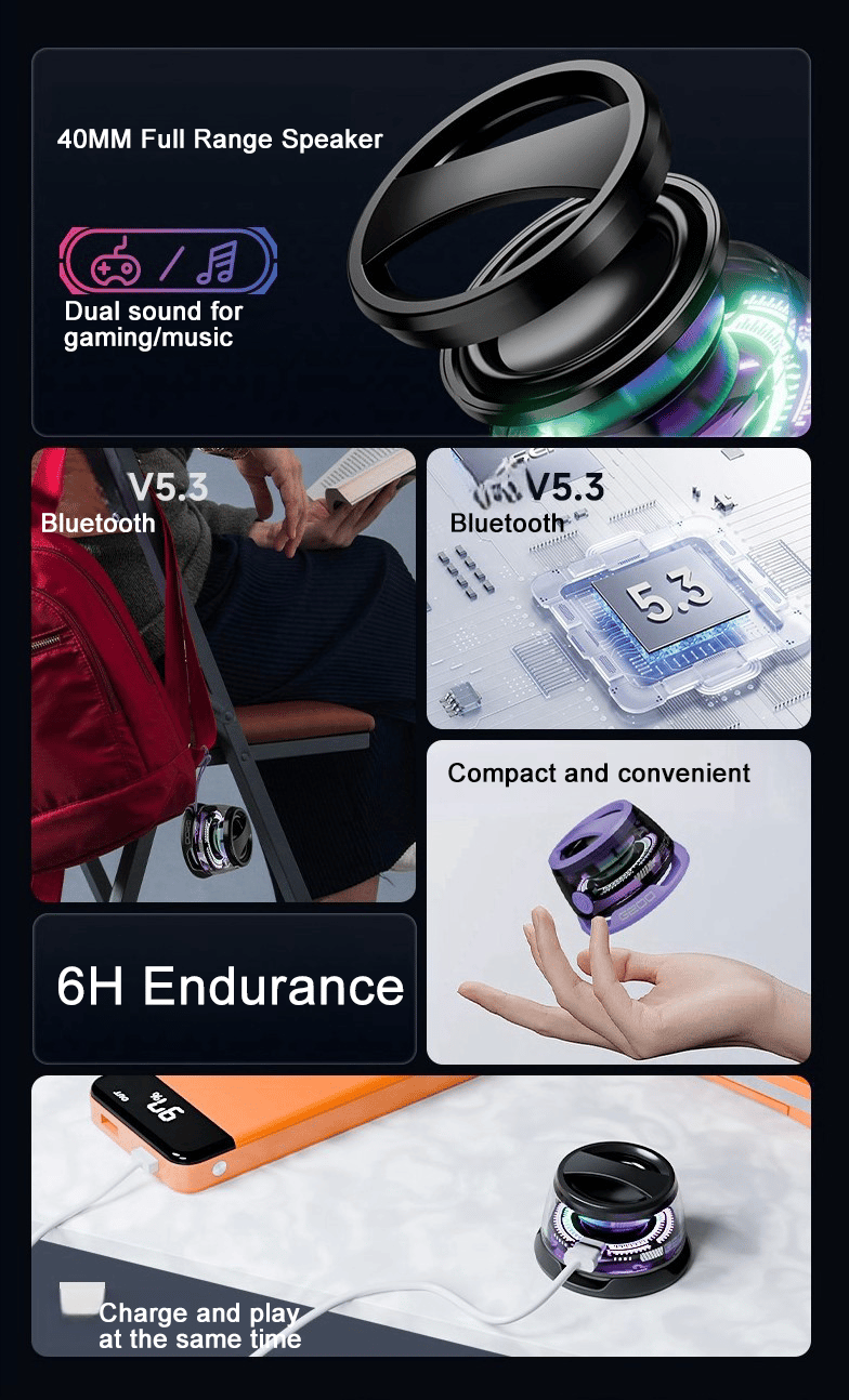 Colorful design:music trend in pocket, high-definition sound quality, hard-core strength, 40mm high-sensitivity full-splitting unit, clearly showing sound details.