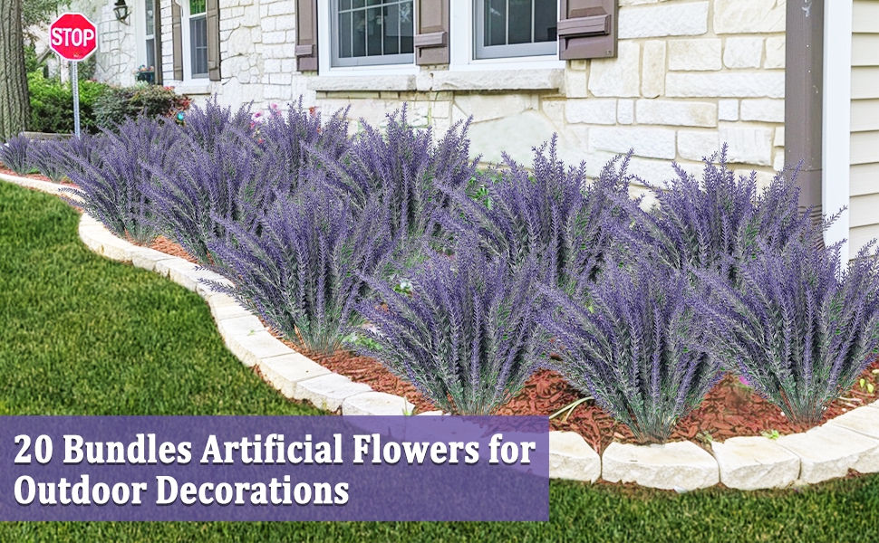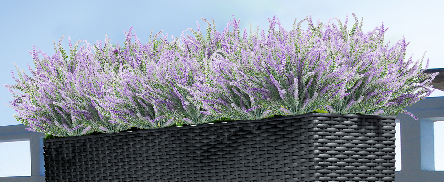 Multipurpose Decorations Artificial flowers - Artificial lavender is perfect as wedding bouquet, home office wall shelf decoration, party supplies table centerpieces arrangement and Christmas decor. "Plant" these uv resistant lifelike lavender flowers on the front porch, backyard, front yard, garden, balcony, window sill, indoor outdoor... They can live anywhere and don't need care or feeding and won't wilt!