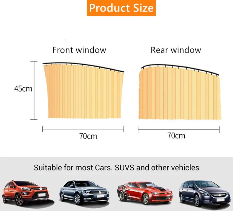 The car shades are stretchable and durable. Highly fit various car windows. Widely compatible with most passenger cars, and SUVs.